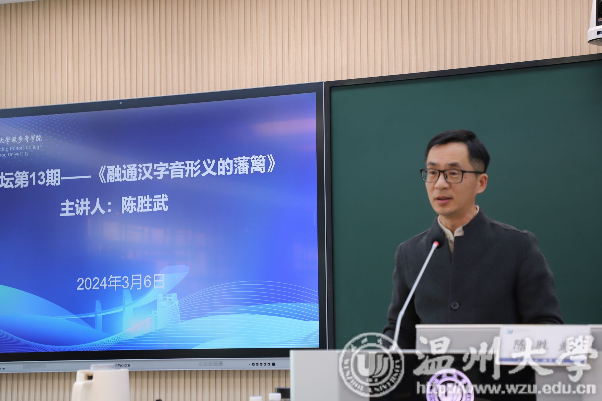 美术与设计学院教授陈胜武老师应邀主讲题为《融通汉字音形义的藩篱》的讲座。