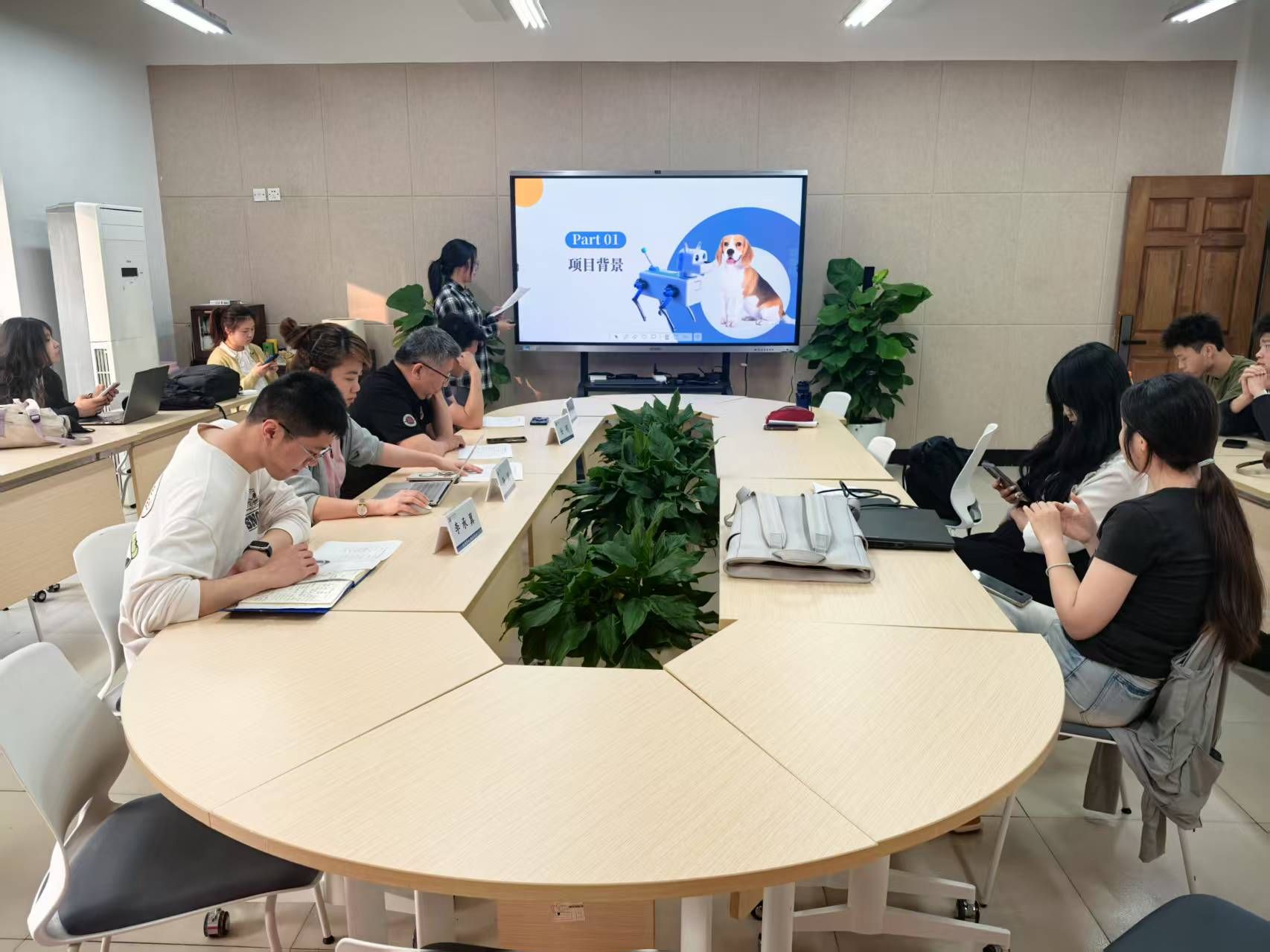 第三届大学生智能机器人创意竞赛指导会,本次指导会由学工办相关教师主持,机电工程学院指导教师任明、成泰洪参会。
