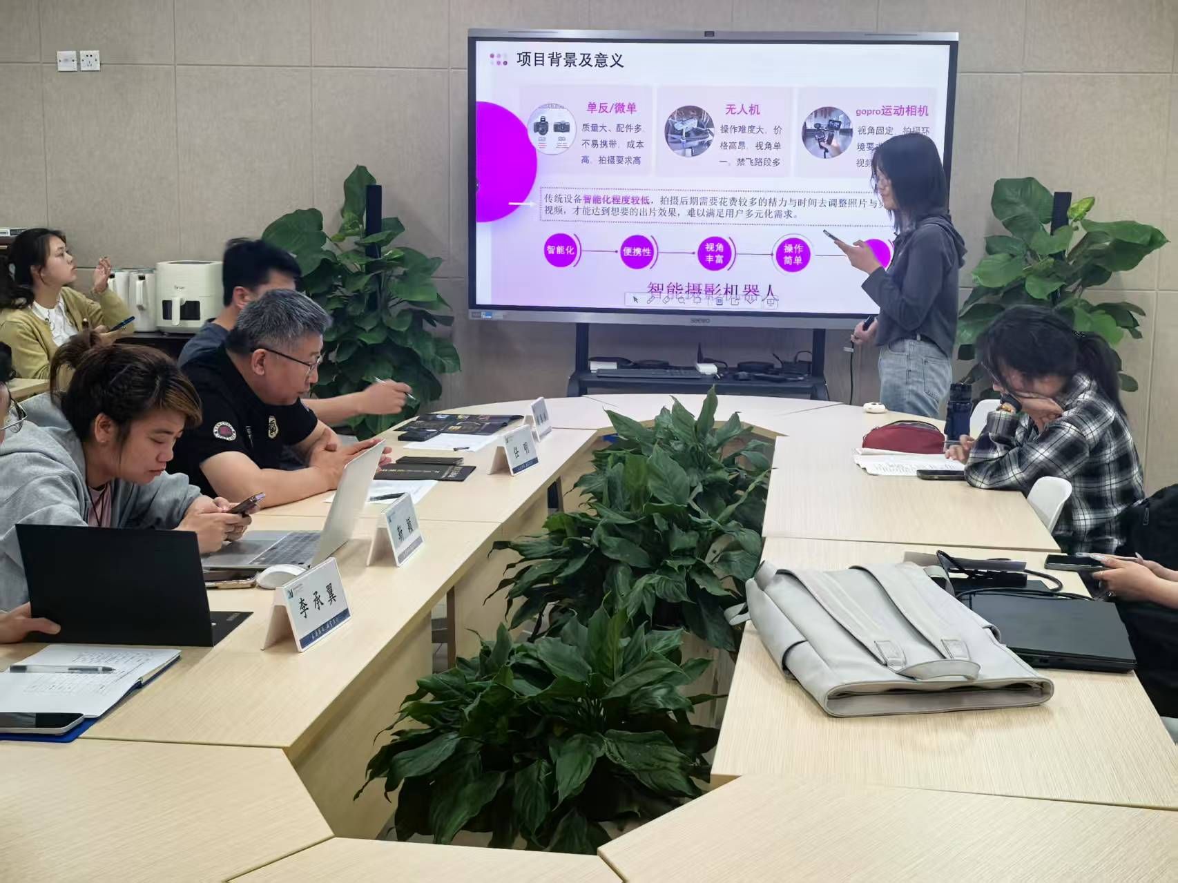 学院共有7个团队参与本次指导会。会上,两位来自机电工程学院的指导教师为参赛学生提供了深入的指导。任明老师强调同学们的设计理念需紧扣大赛主题,要针对现实中生活中人们遇到的痛点来提出解决方案;成泰洪老师高度肯定了同学们的创新意识和创造能力,同时他也指出机器人设计应当结合生活中的实际需求,不要过于追求创新导致脱离实际。