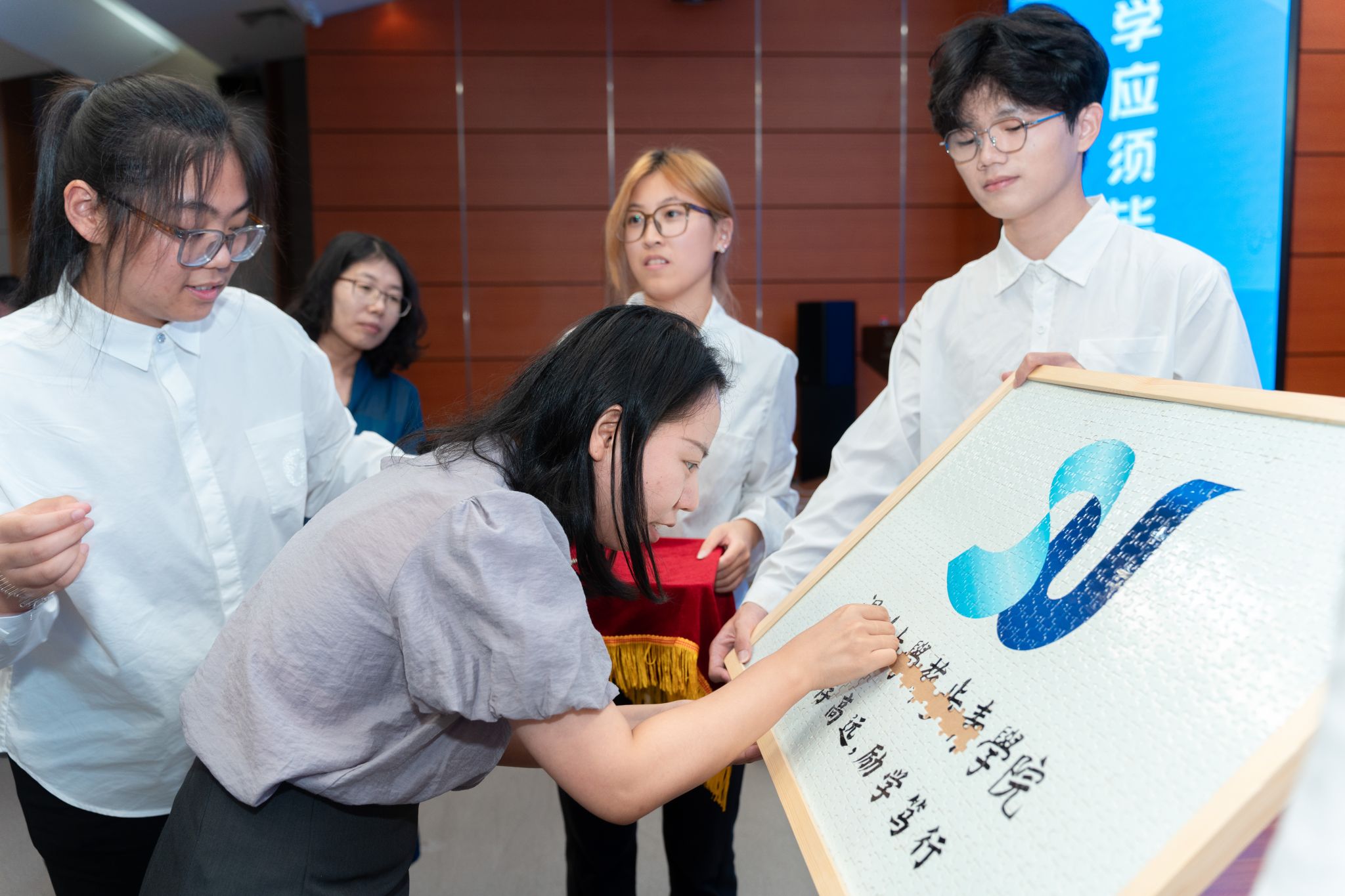 在成长仪式上,各位老师和学生代表共同补全了由100位同学名字共同组成的拼图,以此纪念这一成长时刻。仪式最后,学生们以班级形式与各位领导和老师进行合影留念,标志着2024级步青科学实验班学生转段交流会的圆满结束。