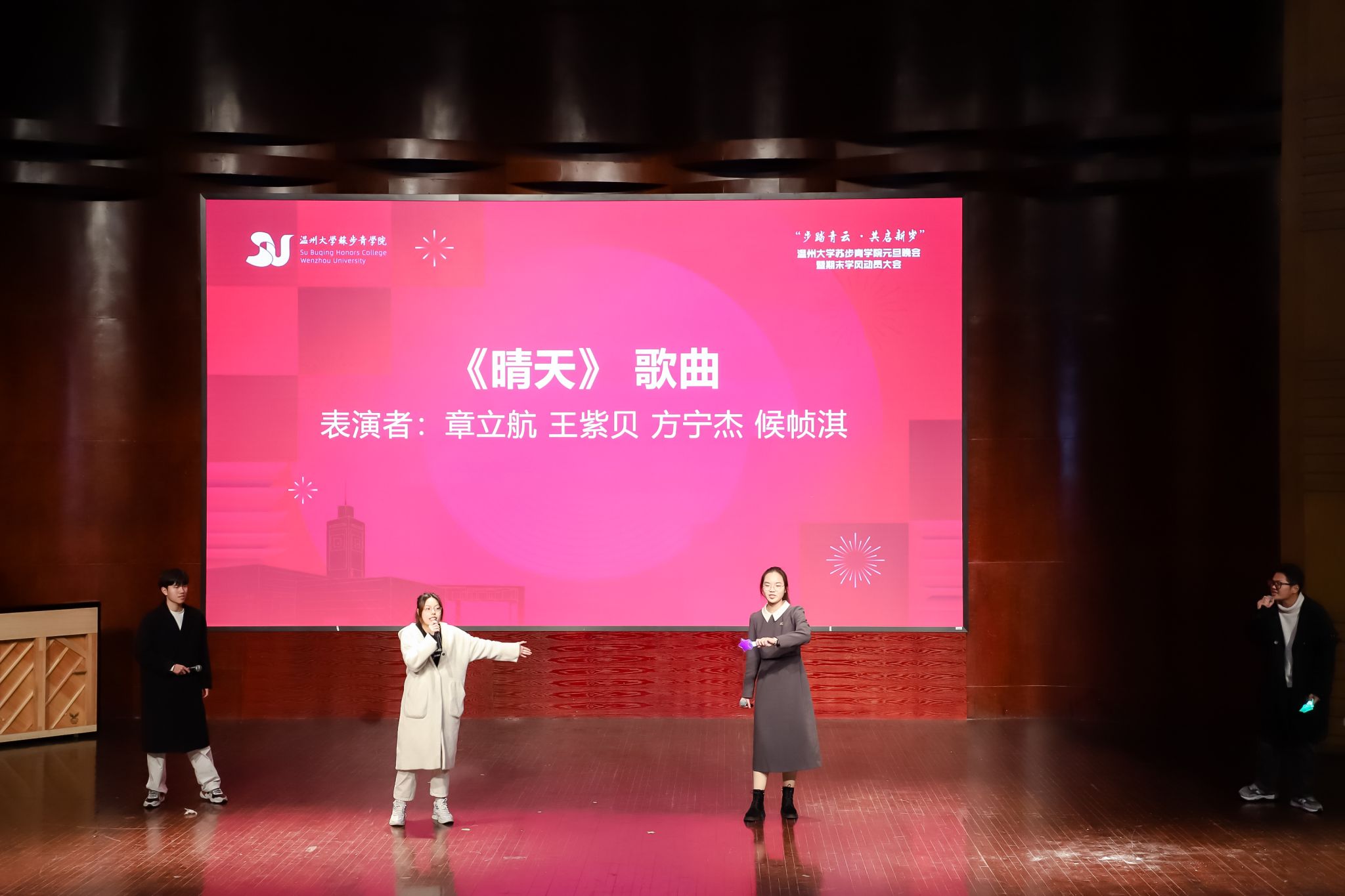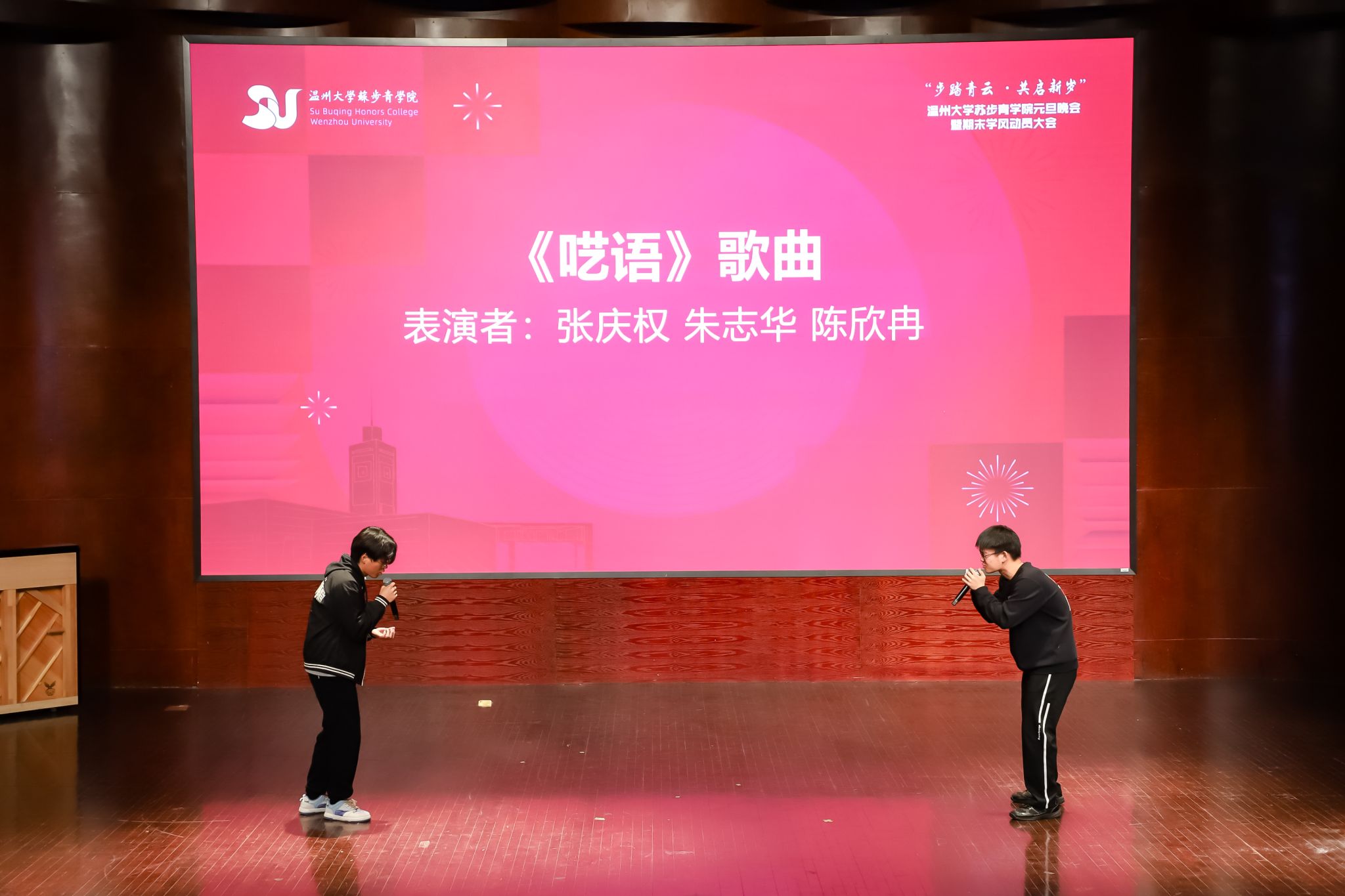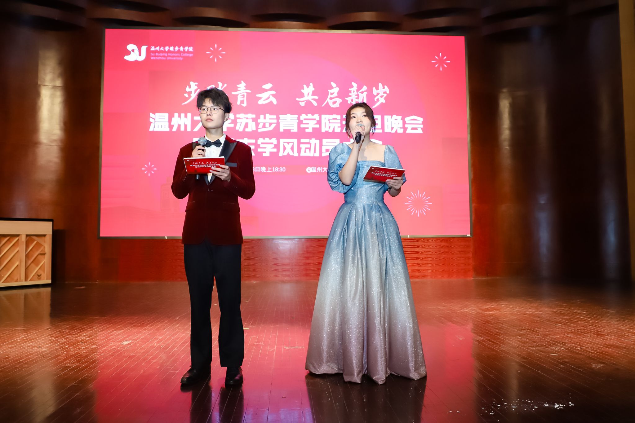 南校音乐厅隆重举办了“步踏青云,共启新发”元旦晚会暨期末学风动员大会。