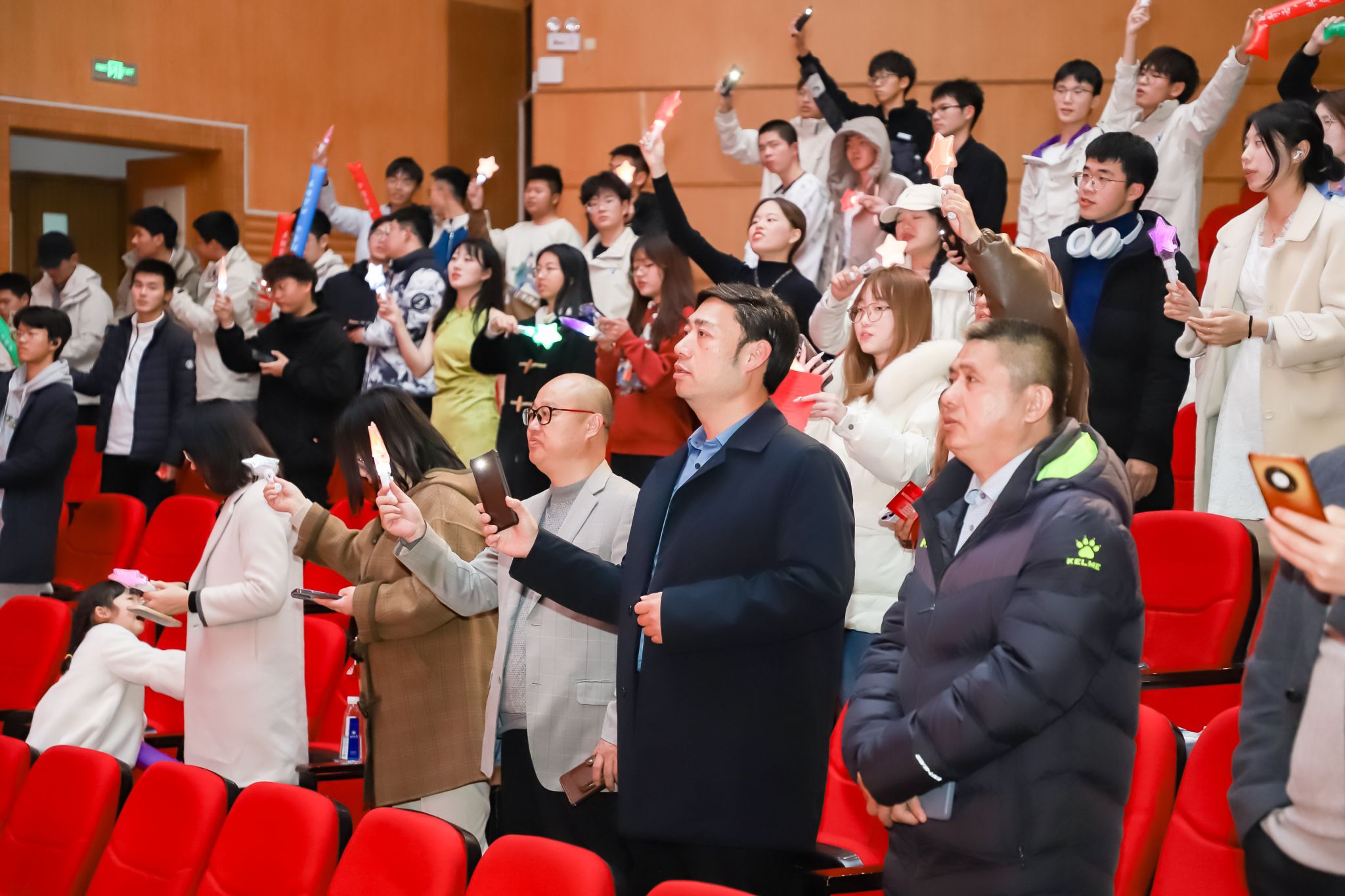 为全体到场人员准备了贴心且温暖的小礼品,包括纸质入场券、应援闪光棒、零食大礼包等。同时,晚会入口还安排了专业摄影师和打卡点,为参与者们留下了难忘的新年回忆。