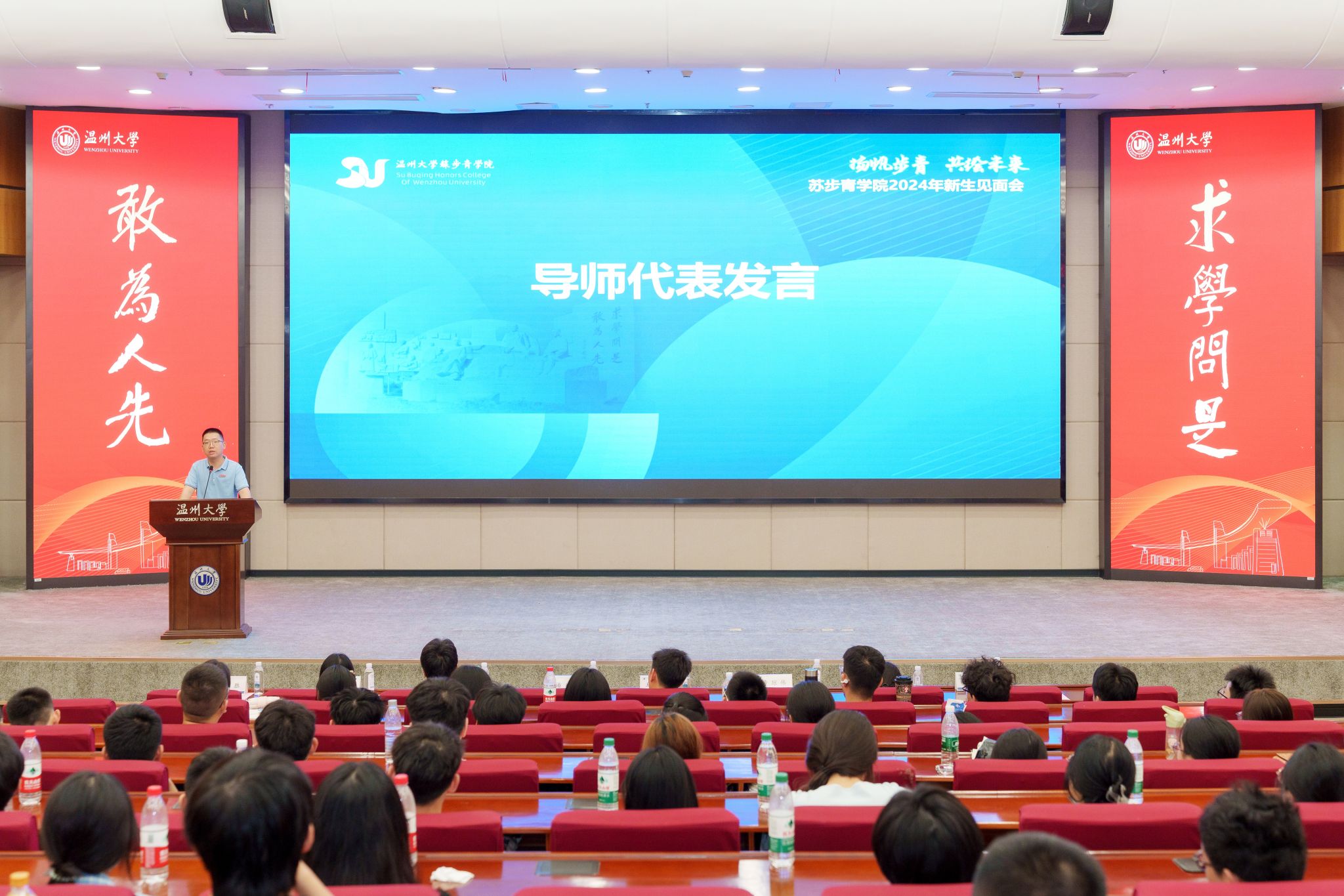 学业导师黄琼伟老师作为导师代表发言。黄琼伟在发言中为新生学习和生活提出了许多宝贵建议,他鼓励新生们树立明确目标,以赛促学,以科研立大志;同时,要自足自律,培养自身的内驱力;更要团结互助,共同营造良好的学习氛围。