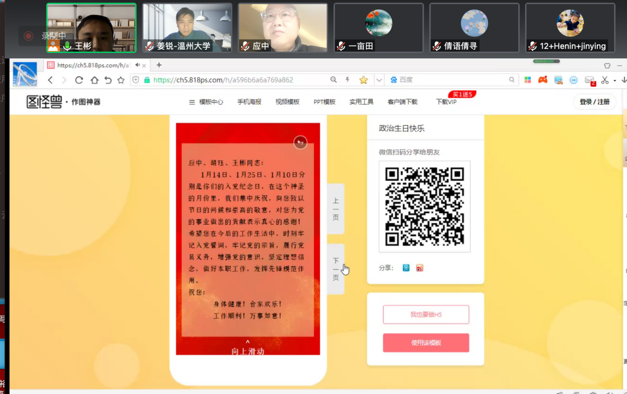 政治生日是每名党员的第二生命,代表着党员政治生命的新开端、政治信仰的新起点,代表着对党的热爱与忠诚。学习会上,教工党支部书记王彬为政治生日在1月的三位党员同志发放政治生日电子贺卡。贺卡内页分别印有入党誓词、政治生日寄语及党员廉洁自律准则,承载着成人影片