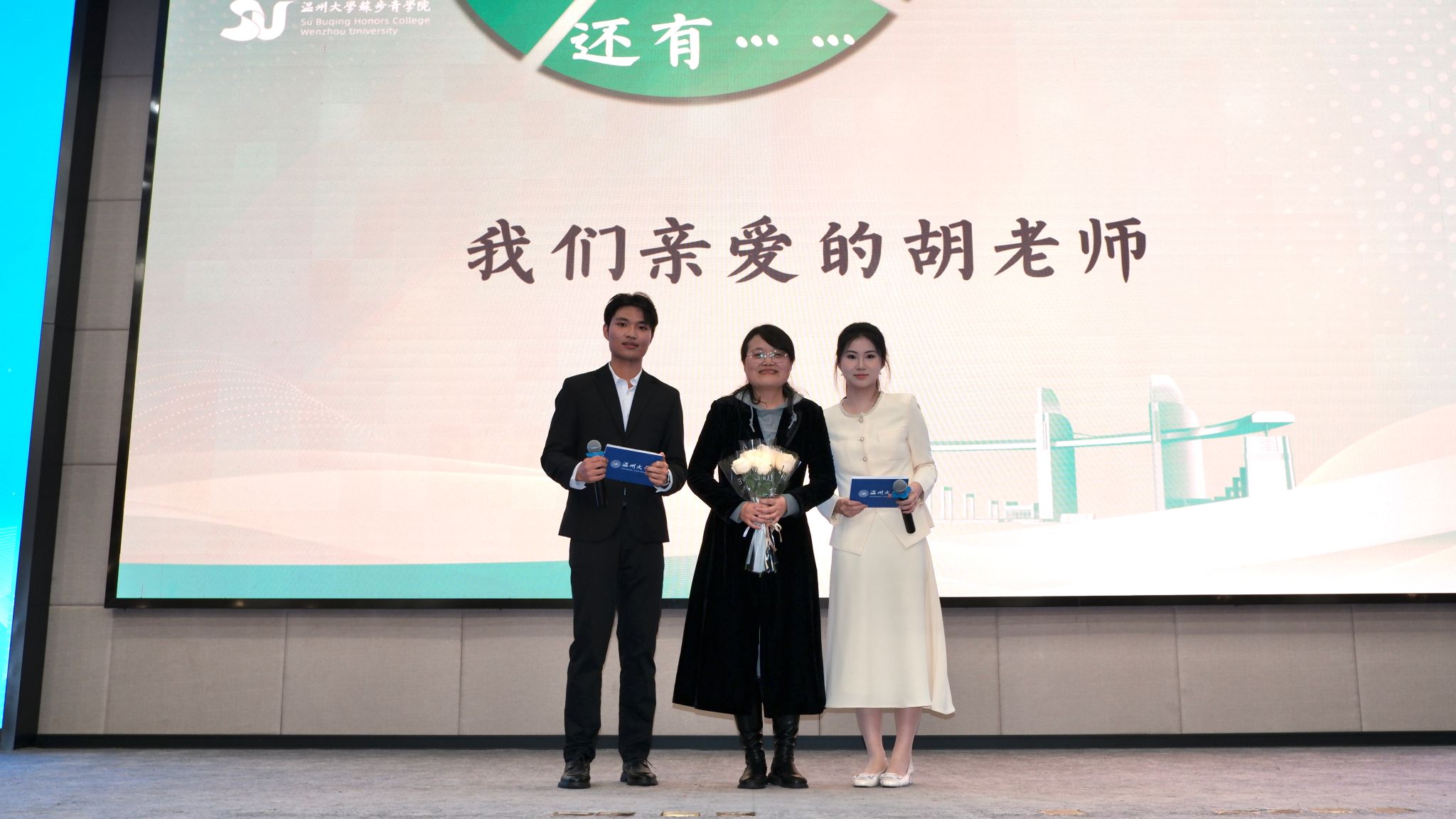 在“鲜花致敬未来”环节,来自溯初班第17期的陈舒慧、施琳玮、曹光豪、蒋远同学分享了他们如何在今年大学生新文科实践创新大赛中披荆斩棘,荣获国赛金奖的经验。为了帮助第16期溯初班成员更好地适应未来的一线教学,来自第13期的倪安舒、项国朝同学各自分享了自己一路走来的教育经历,让人久久难以忘怀。