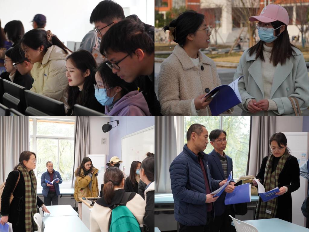 在本次比赛中,由第十四期溯初实验班和国赛选手共14名成员组成的观摩服务队与比赛选手们一同前往台州学院。观摩服务队秉持着“同伴互助、生命成长”的溯初实验班精神,在观摩实战比赛、学习经验的同时,也为参赛选手提供周到的后勤服务。在观摩全省各高校的顶尖师范技能选手的教学大比拼后,潘欣怡同学表示:“我意识到教学应当重在思考‘教什么、怎样教、为什么教’。王钎窈同学也表示:“能够助力学长学姐们在省赛中取得好成绩,为他们排忧解难,帮助他们全身心投入备赛,我们既荣幸又欣喜。在此过程中我们也受益匪浅。”