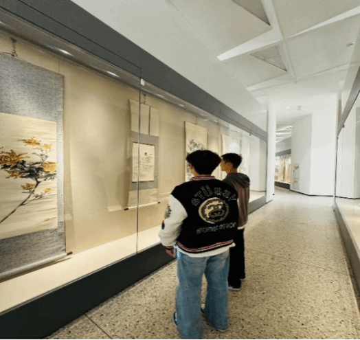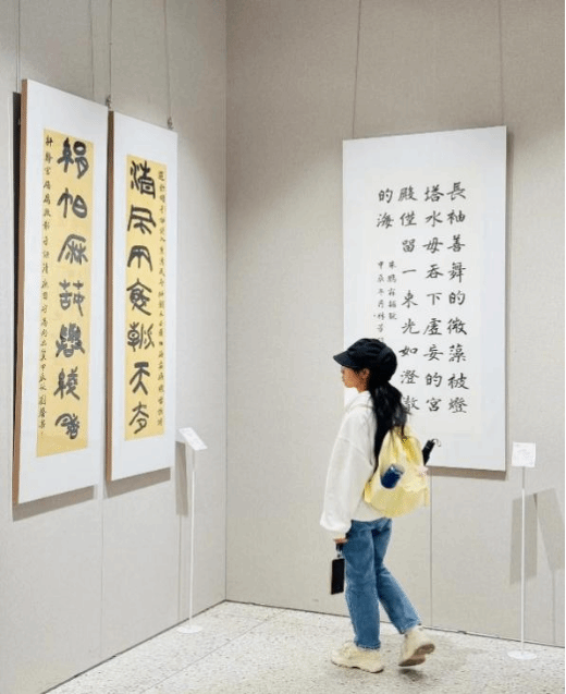 学生齐聚学校美术馆,参观“清风尚美 礼颂华诞——廉洁文化艺术作品展”。