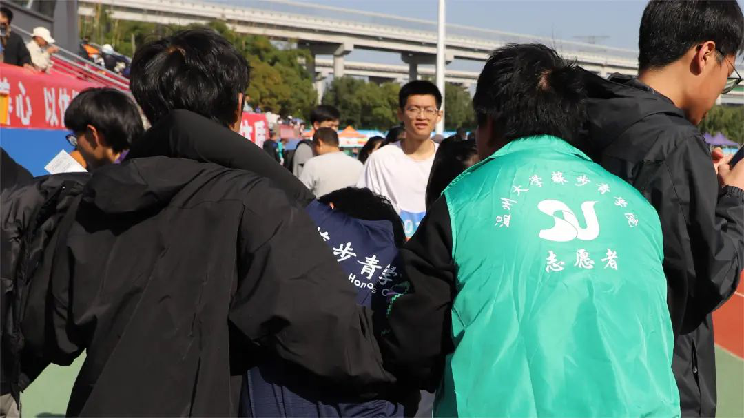 在各类通知群里,他们提醒运动员检录;在各个角度,他们记录着运动员的精彩瞬间;在终点处,他们搀扶疲惫的运动员们……